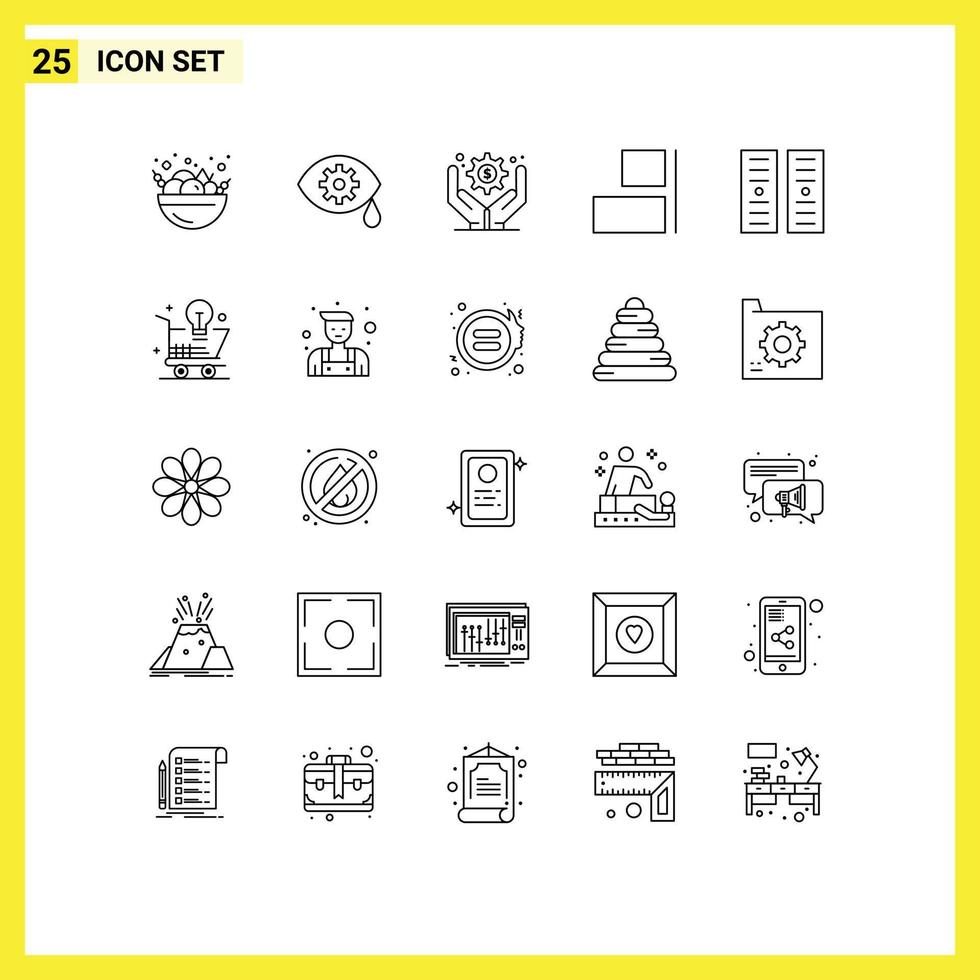 25 User Interface Line Pack of modern Signs and Symbols of online cart business operations server data center Editable Vector Design Elements