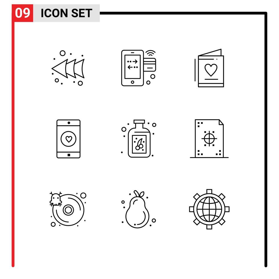 9 Thematic Vector Outlines and Editable Symbols of berry like card mobile application application Editable Vector Design Elements Free Vector