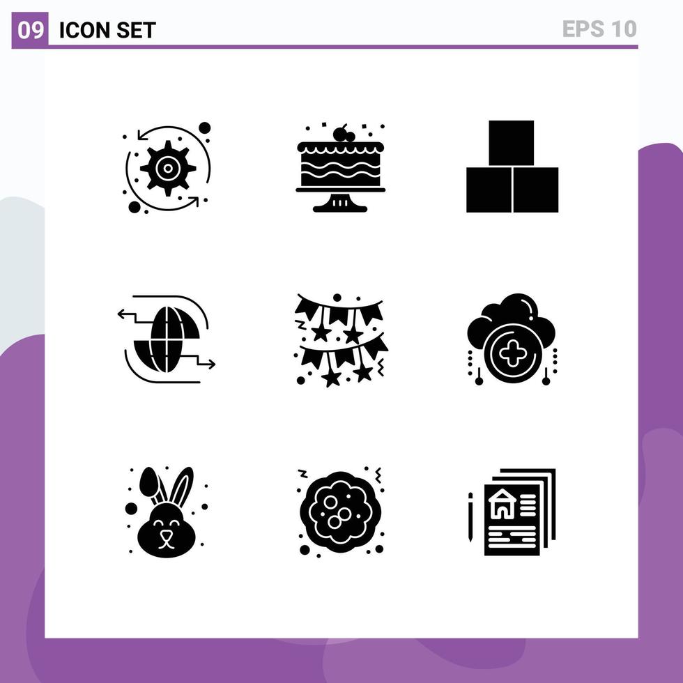9 User Interface Solid Glyph Pack of modern Signs and Symbols of bow communication blocks internet connect Editable Vector Design Elements