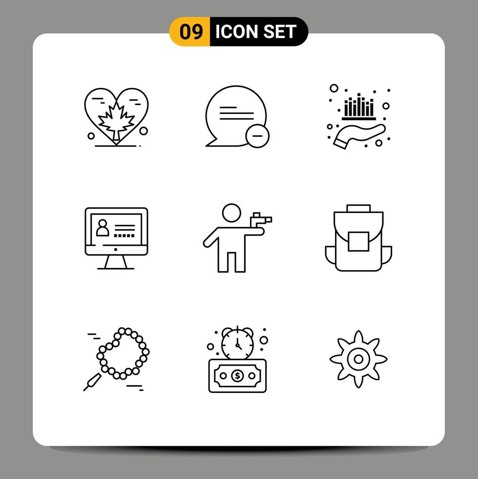 9 Universal Outlines Set for Web and Mobile Applications gun internet message computer market Editable Vector Design Elements