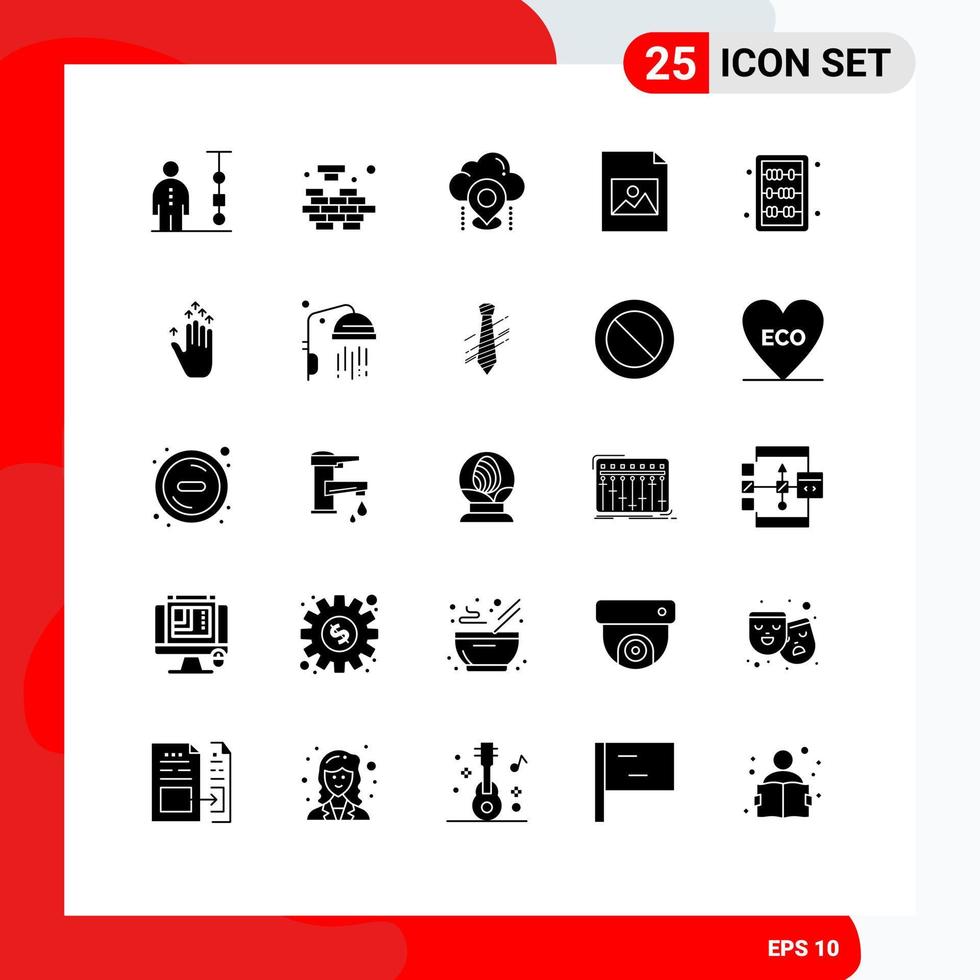 25 User Interface Solid Glyph Pack of modern Signs and Symbols of abacus file solving document map Editable Vector Design Elements