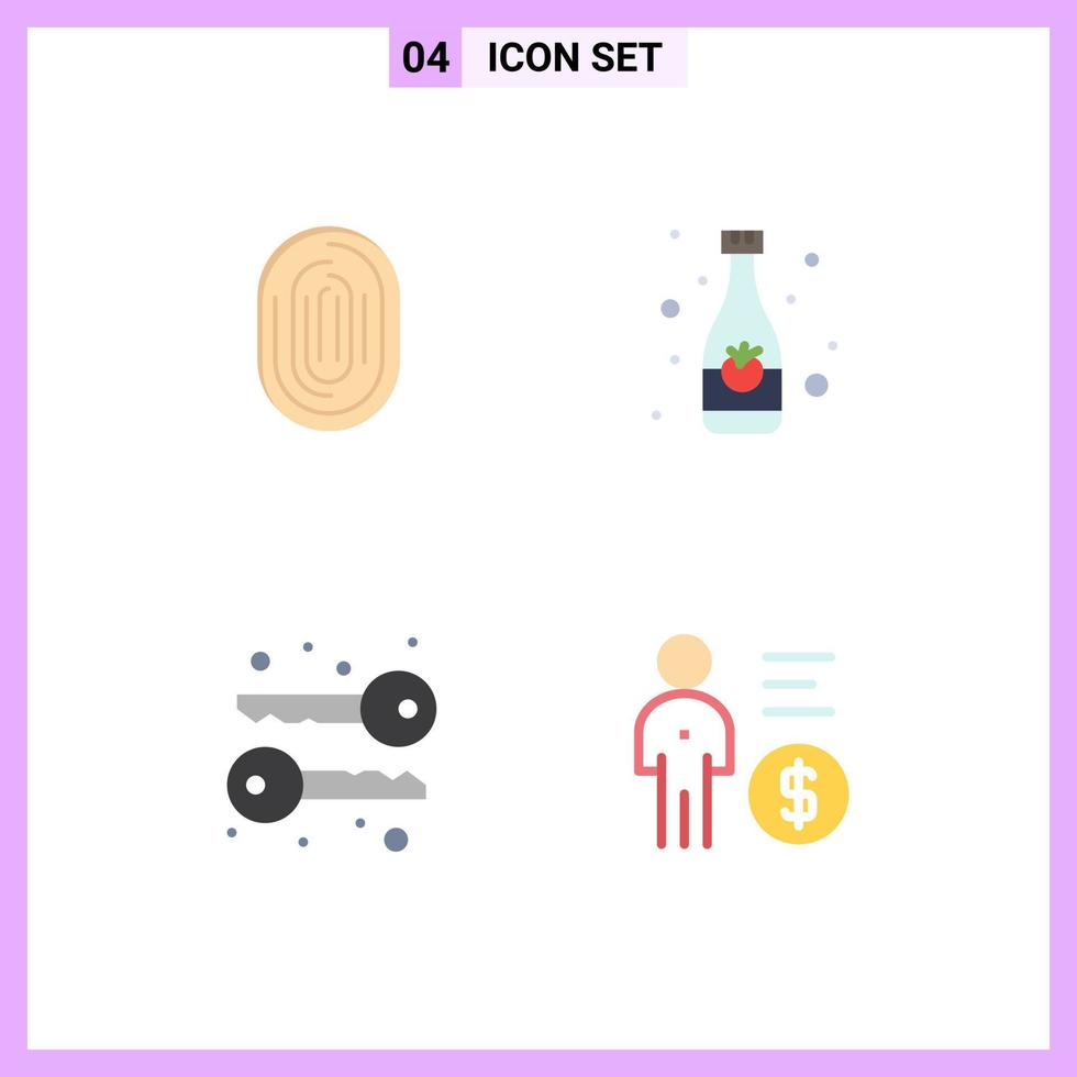 User Interface Pack of 4 Basic Flat Icons of fingerprint soft drink scan beverage keys Editable Vector Design Elements Free Vector