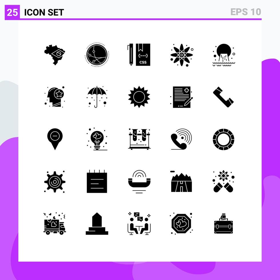 Editable Vector Line Pack of 25 Simple Solid Glyphs of pollution science code energy development Editable Vector Design Elements