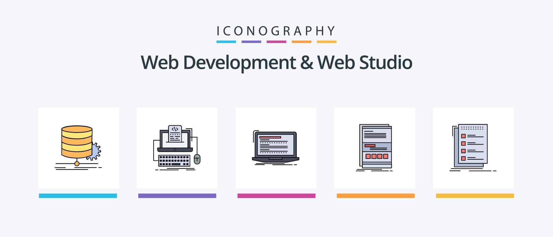 Web Development And Web Studio Line Filled 5 Icon Pack Including internet. browser. structure. test. flask. Creative Icons Design vector