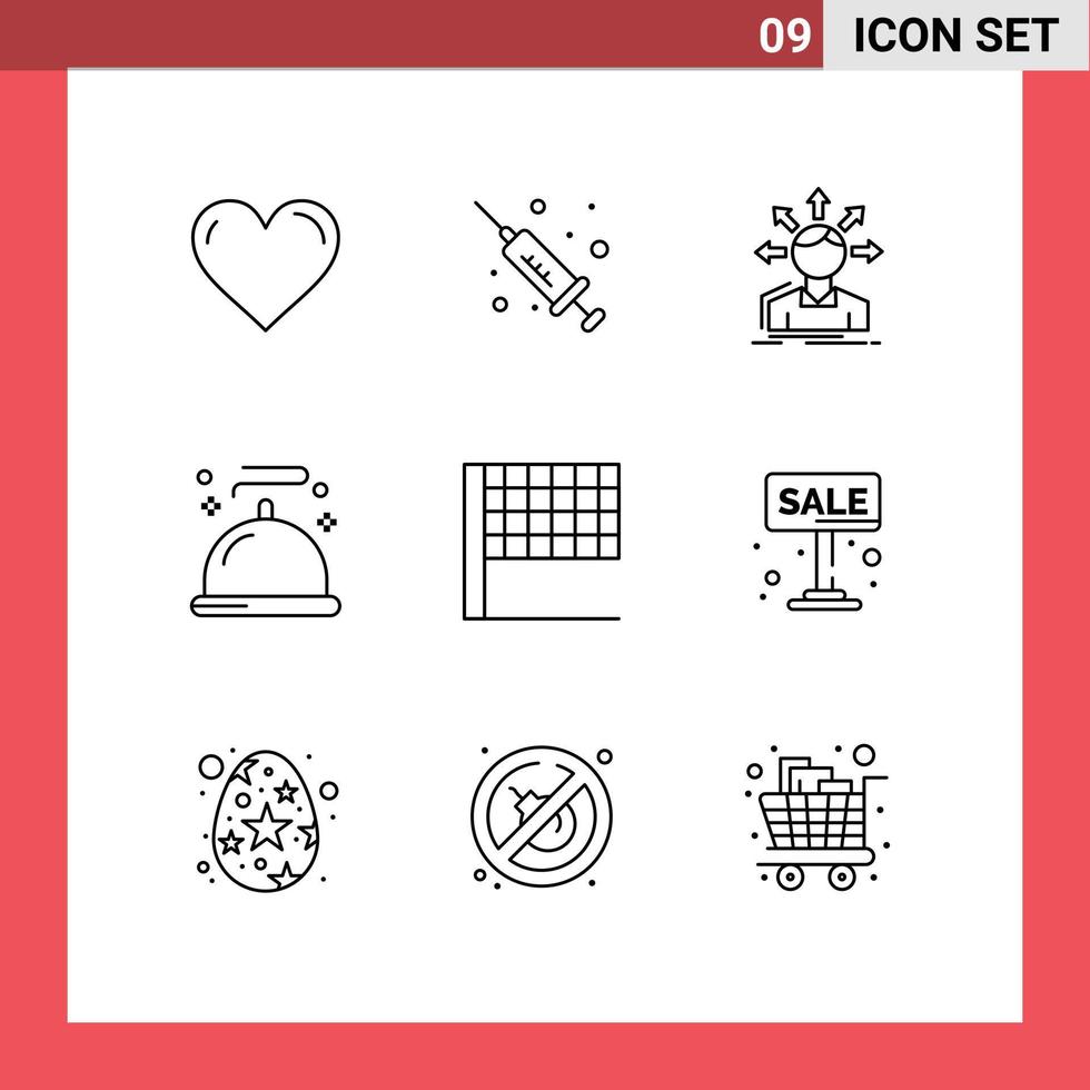 User Interface Pack of 9 Basic Outlines of flag restaurant conversion menu transition Editable Vector Design Elements Free Vector