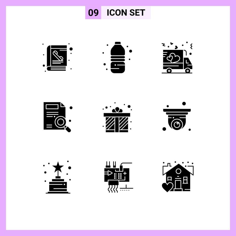 9 Universal Solid Glyphs Set for Web and Mobile Applications gift box search delivery report find Editable Vector Design Elements