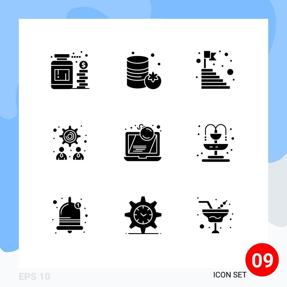Editable Vector Line Pack of 9 Simple Solid Glyphs of computer attack top teamwork management Editable Vector Design Elements Free Vector