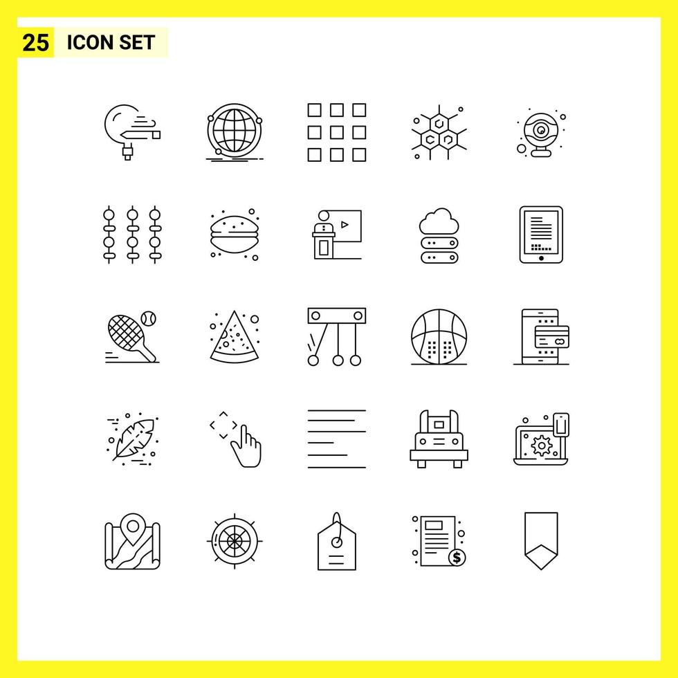25 Universal Line Signs Symbols of science chemist network number key locks Editable Vector Design Elements