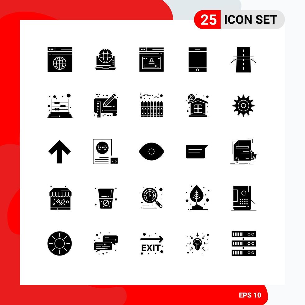 User Interface Pack of 25 Basic Solid Glyphs of tablet device network profile web Editable Vector Design Elements