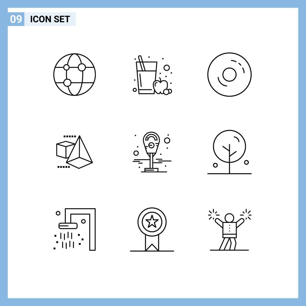 User Interface Pack of 9 Basic Outlines of parking machine cafe triangle model Editable Vector Design Elements Free Vector