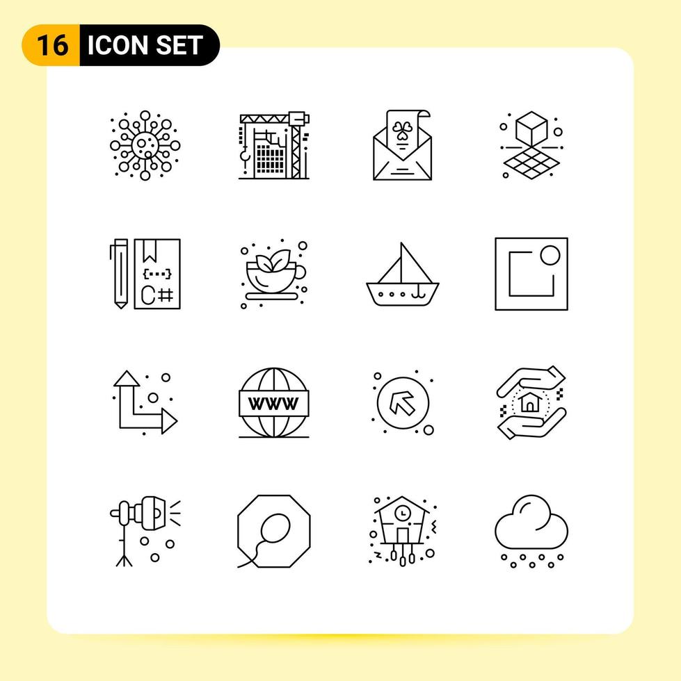 16 Universal Outlines Set for Web and Mobile Applications c printing machine cube greeting Editable Vector Design Elements