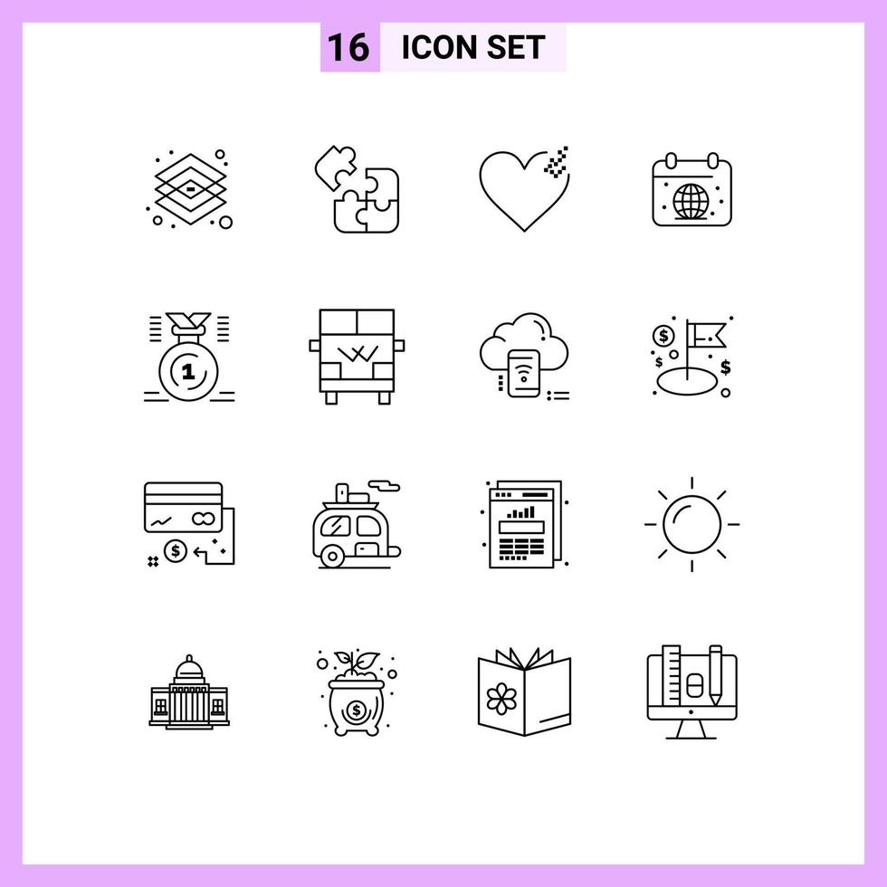 16 Outline concept for Websites Mobile and Apps award globe solution earth calender Editable Vector Design Elements