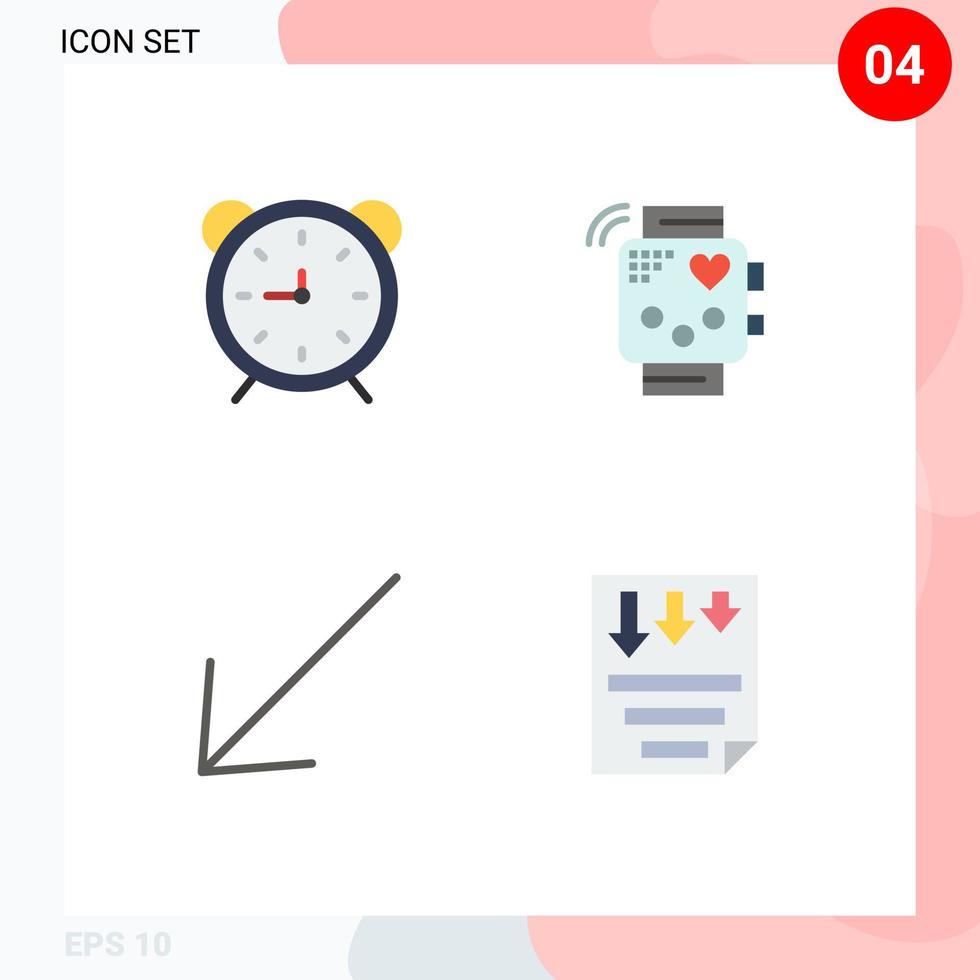 Group of 4 Modern Flat Icons Set for clock monitoring timer device down Editable Vector Design Elements Free Vector
