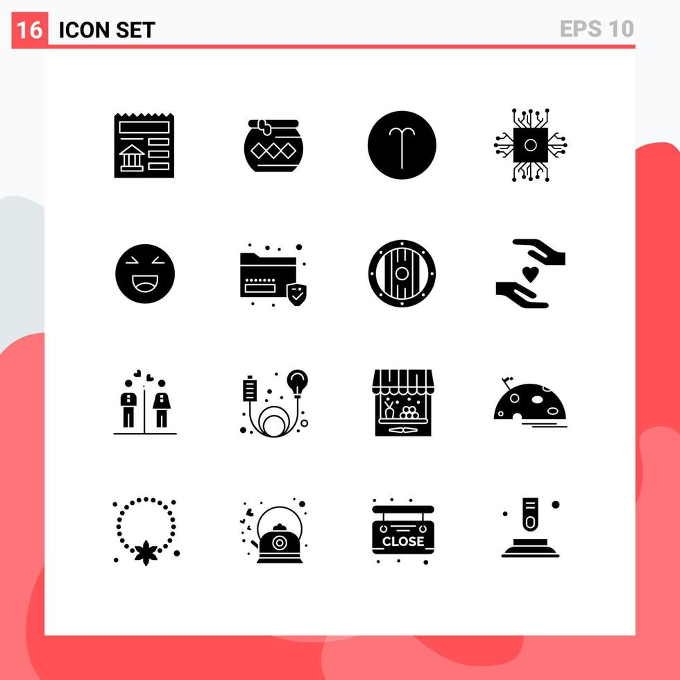User Interface Pack of 16 Basic Solid Glyphs of technology microchip festival cpu symbols Editable Vector Design Elements Free Vector