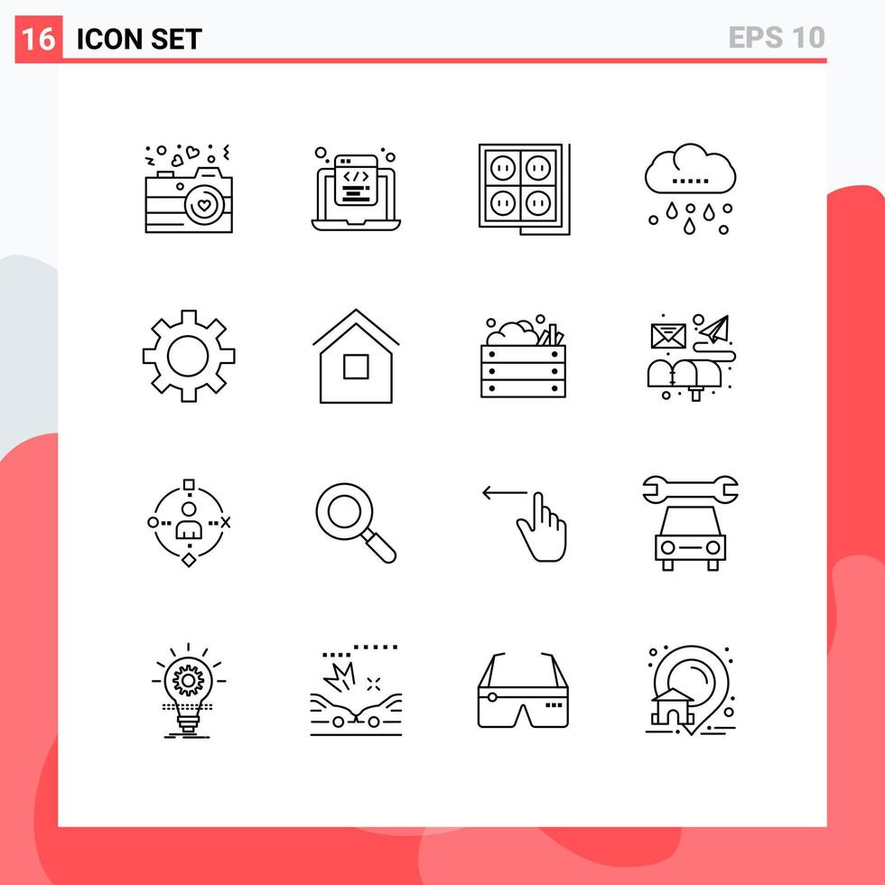 16 User Interface Outline Pack of modern Signs and Symbols of thanksgiving rain web cloud socket Editable Vector Design Elements Free Vector