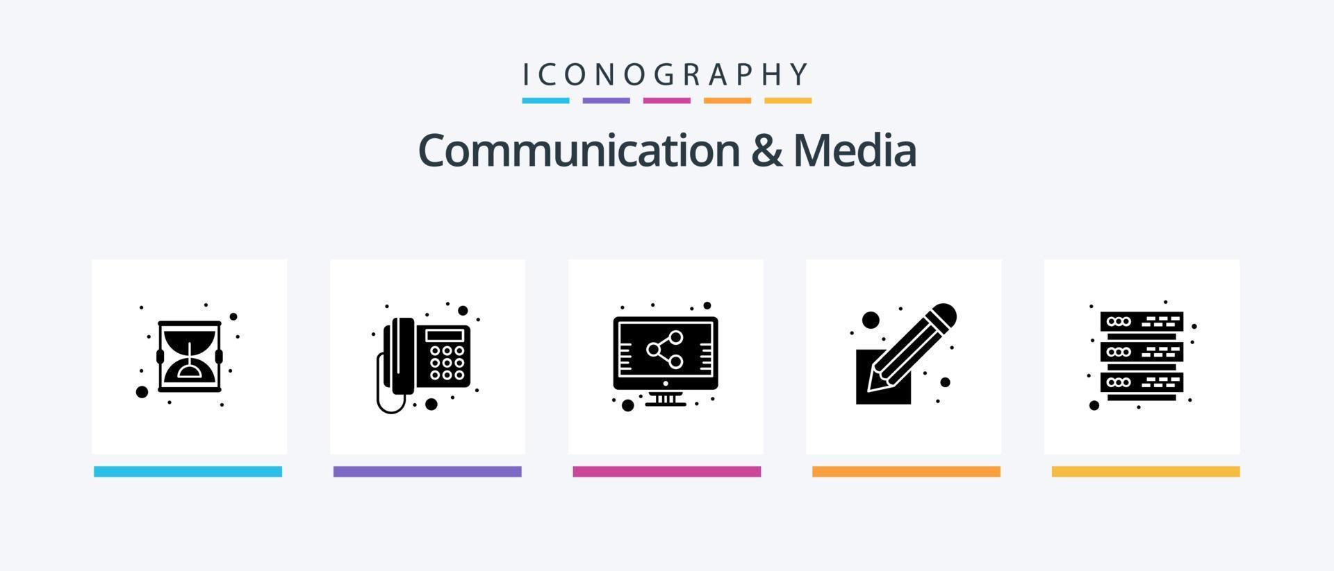 Communication And Media Glyph 5 Icon Pack Including storage. database. file. script. screenplay. Creative Icons Design vector