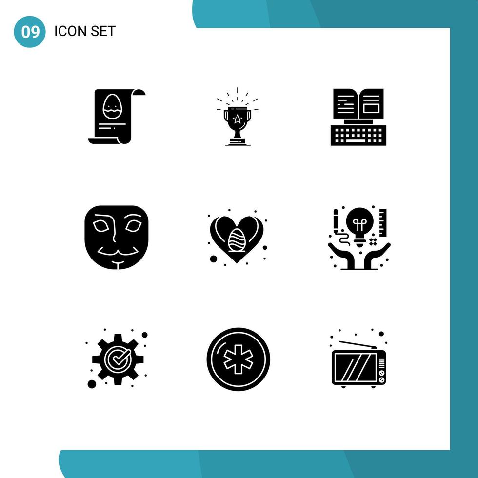 9 Solid Glyph concept for Websites Mobile and Apps mask anonymous prize facebook keyboard Editable Vector Design Elements