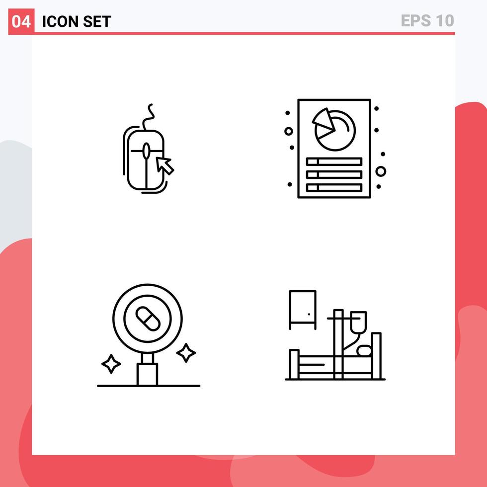 Mobile Interface Line Set of 4 Pictograms of mouse research online customization medical Editable Vector Design Elements Free Vector