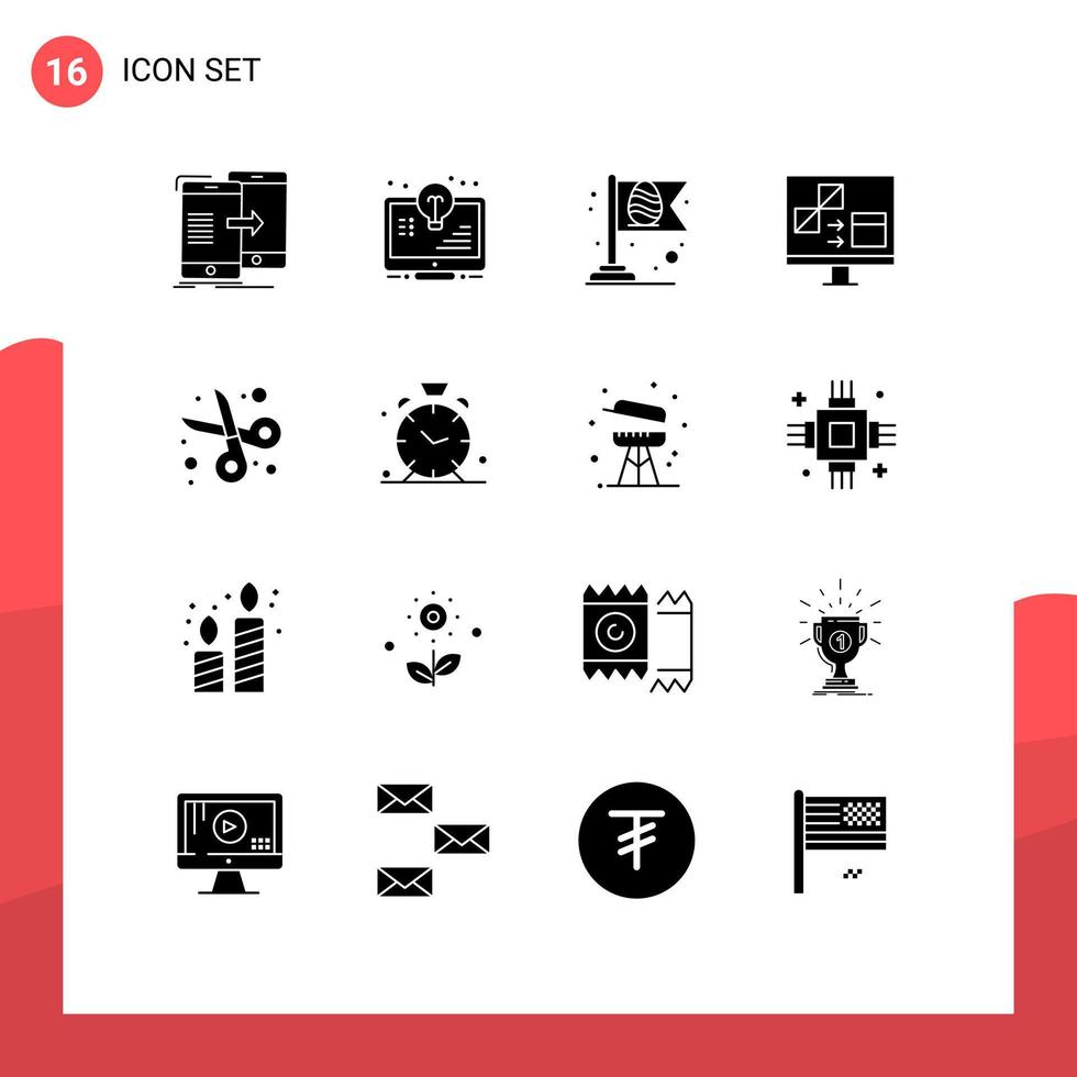 Group of 16 Modern Solid Glyphs Set for develop coding light bulb app egg Editable Vector Design Elements