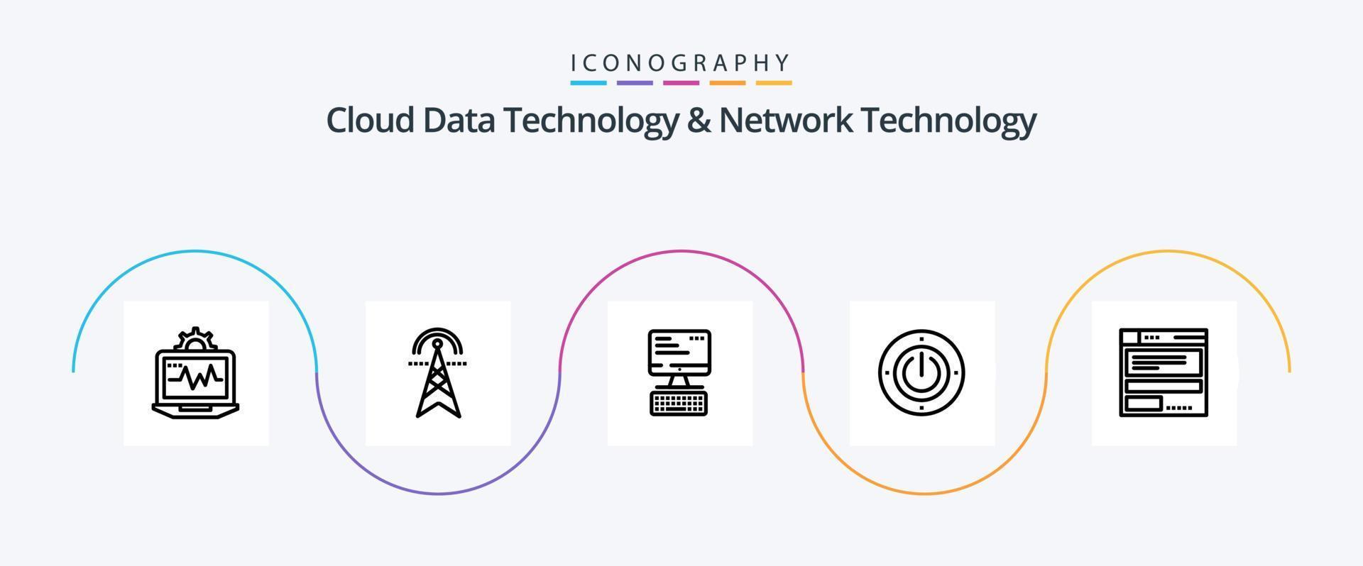 Cloud Data Technology And Network Technology Line 5 Icon Pack Including file . power. computing. energy. computing Free Vector