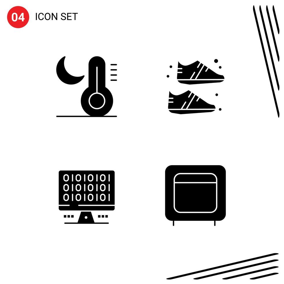 Mobile Interface Solid Glyph Set of 4 Pictograms of climate computer temperature shoe server Editable Vector Design Elements