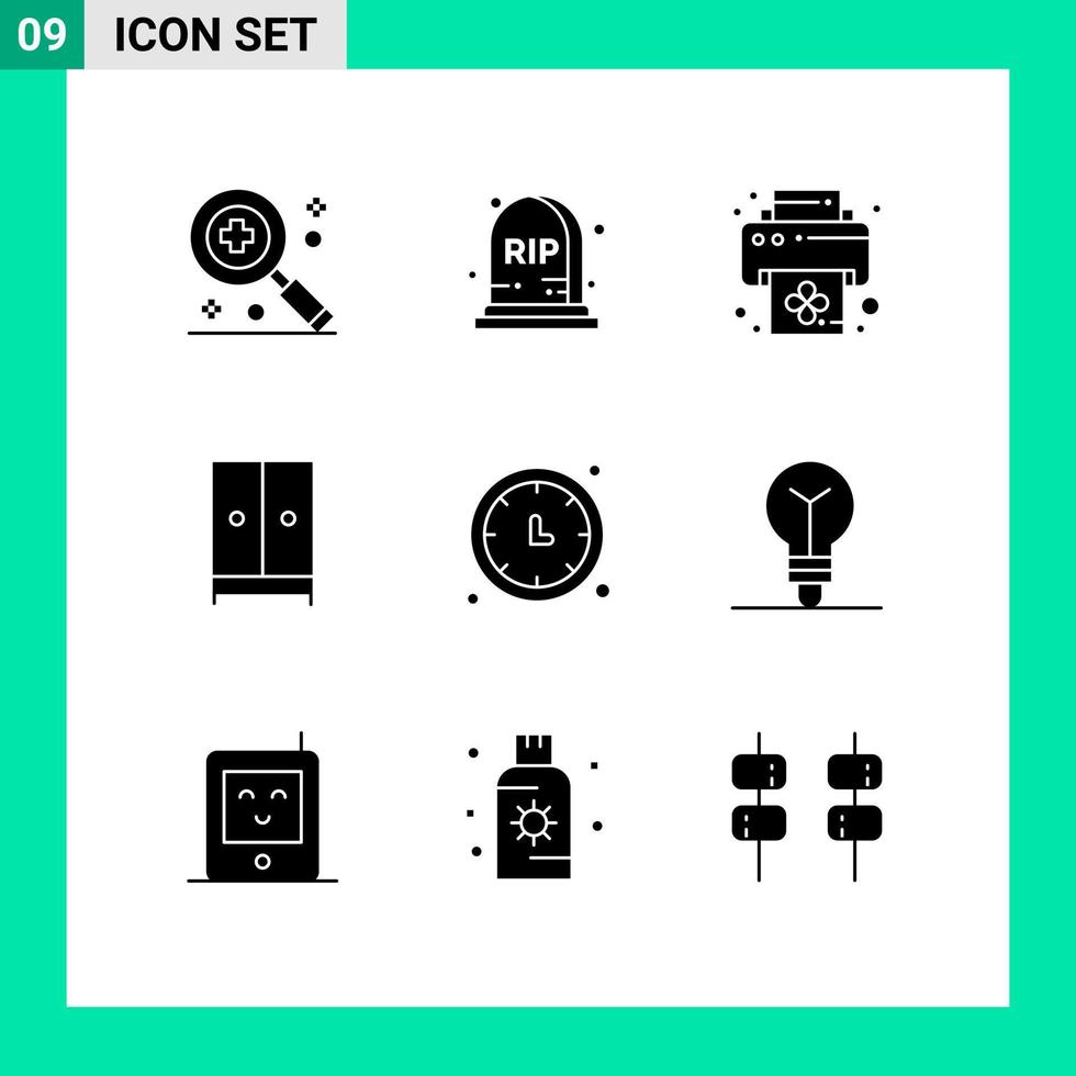 User Interface Pack of 9 Basic Solid Glyphs of timer time printer clock home Editable Vector Design Elements Free Vector