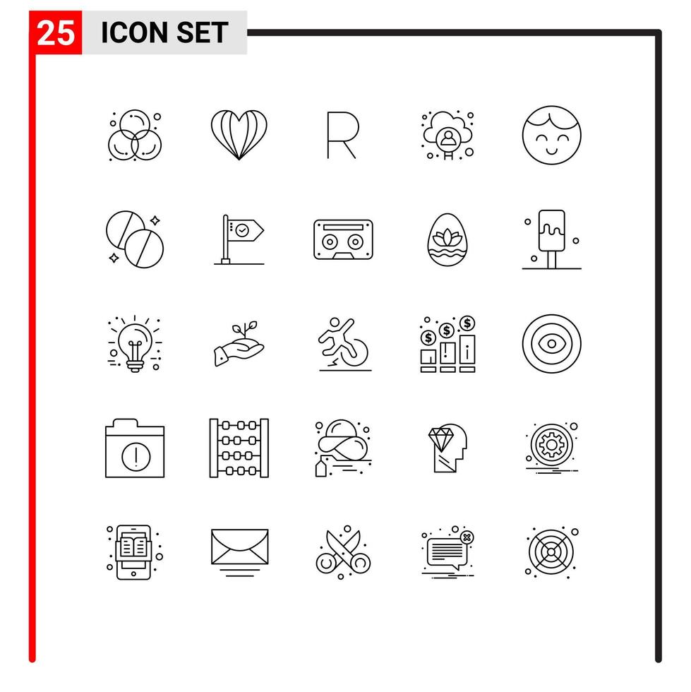25 Universal Lines Set for Web and Mobile Applications baby man like cloud zar Editable Vector Design Elements Free Vector