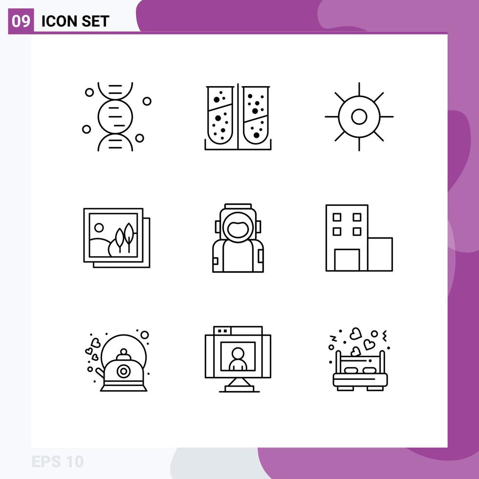 9 Outline concept for Websites Mobile and Apps spaceman astronaut lab picture gallery Editable Vector Design Elements