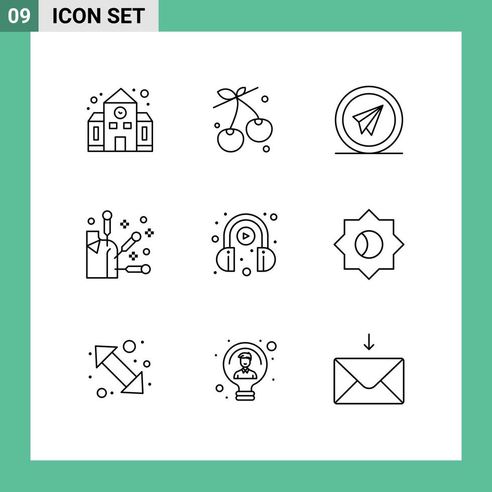 Set of 9 Vector Outlines on Grid for headphone element airplane spa paper plane Editable Vector Design Elements