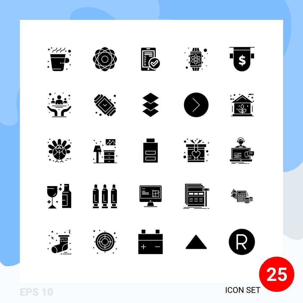 Group of 25 Solid Glyphs Signs and Symbols for feature smart physics device security Editable Vector Design Elements