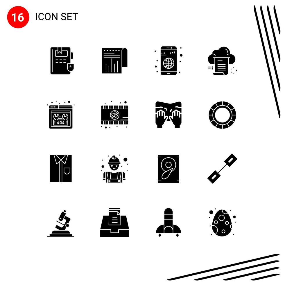 Modern Set of 16 Solid Glyphs and symbols such as missing computing application cloud share Editable Vector Design Elements Free Vector
