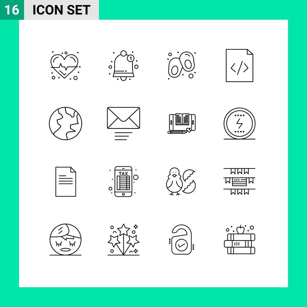 Universal Icon Symbols Group of 16 Modern Outlines of message nature line globe html Editable Vector Design Elements