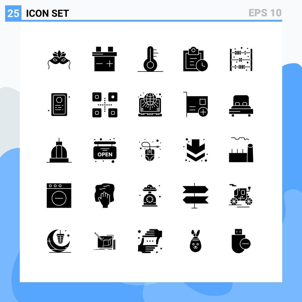 25 Universal Solid Glyphs Set for Web and Mobile Applications test assignment weather count abacus toy Editable Vector Design Elements Free Vector