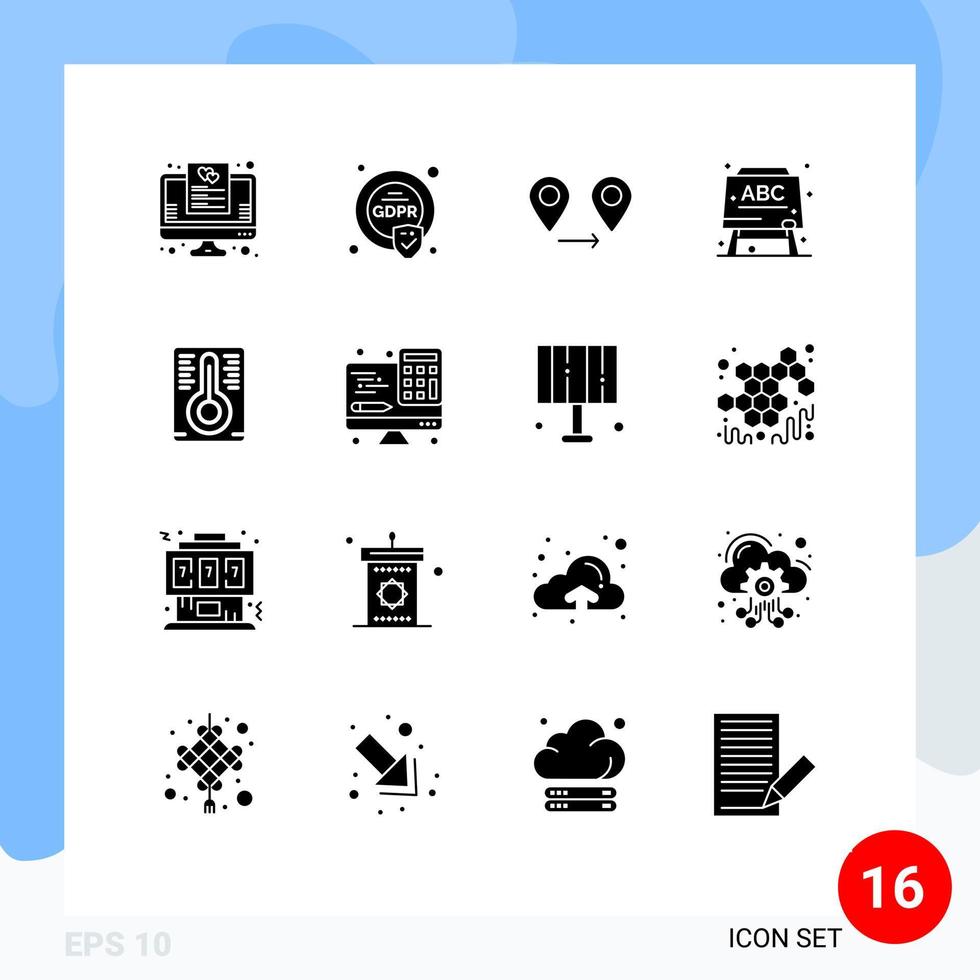 Set of 16 Vector Solid Glyphs on Grid for computer temperature measurement gps temperature education Editable Vector Design Elements