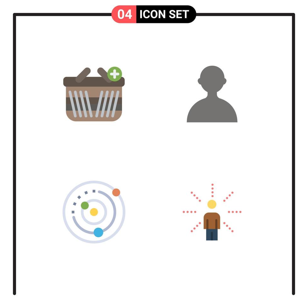 Pack of 4 Modern Flat Icons Signs and Symbols for Web Print Media such as basket planets orbiting add basic sphere Editable Vector Design Elements