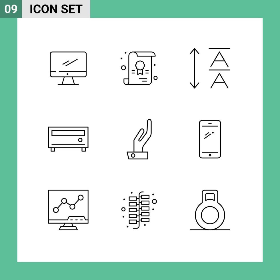 User Interface Pack of 9 Basic Outlines of smart phone share font hand player Editable Vector Design Elements Free Vector