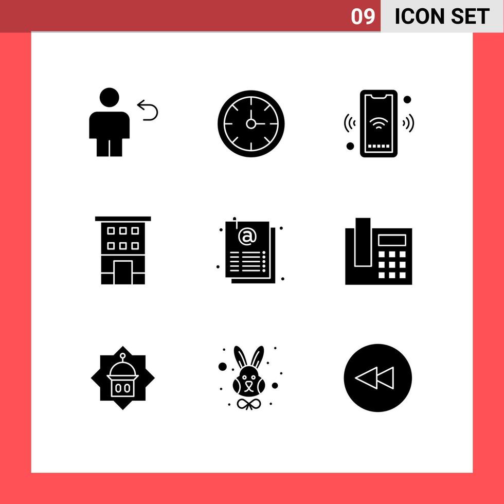 User Interface Pack of 9 Basic Solid Glyphs of shop front buildings time building connect Editable Vector Design Elements Free Vector
