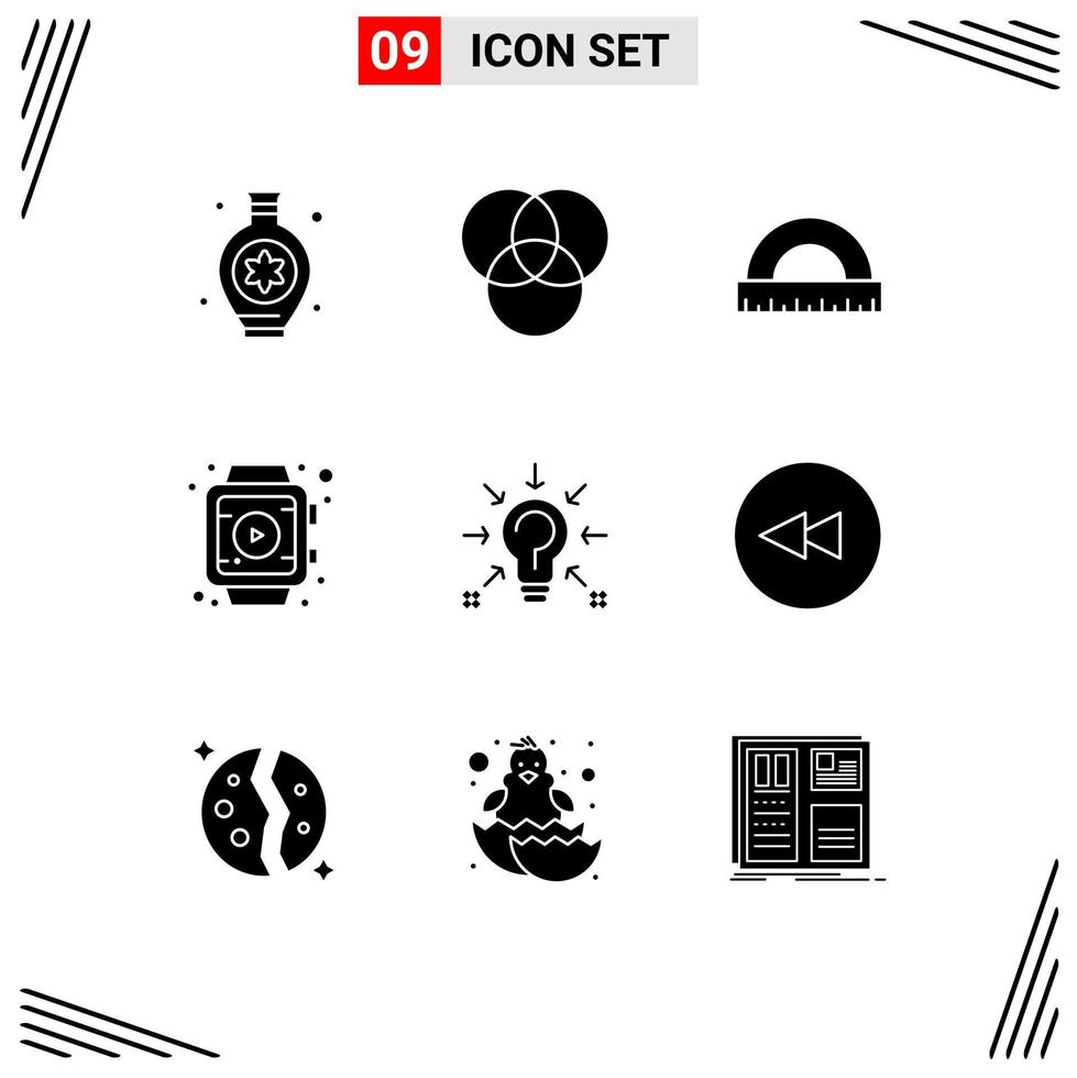 Mobile Interface Solid Glyph Set of 9 Pictograms of backward solution scale idea bulb Editable Vector Design Elements Free Vector