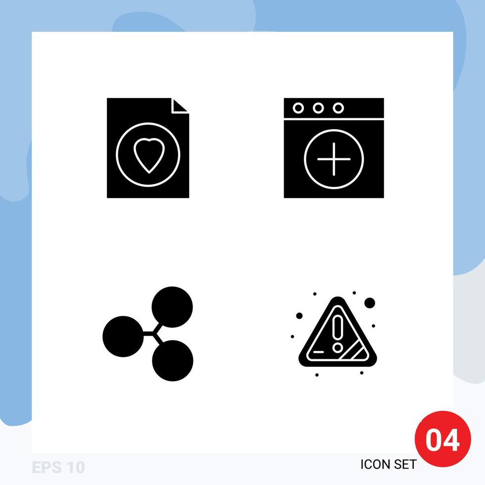 Mobile Interface Solid Glyph Set of 4 Pictograms of document alert app cryptocurrency attention Editable Vector Design Elements