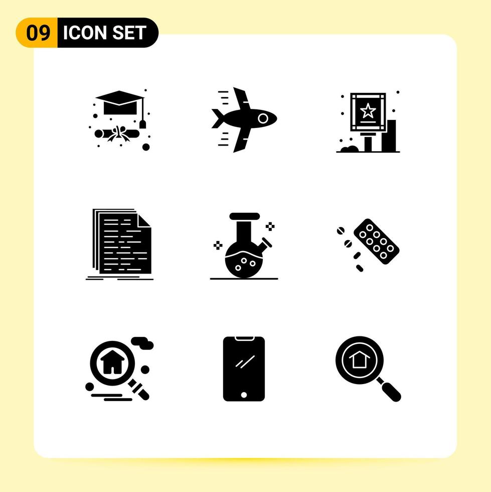 Editable Vector Line Pack of 9 Simple Solid Glyphs of potion demo flask billboard script doc Editable Vector Design Elements