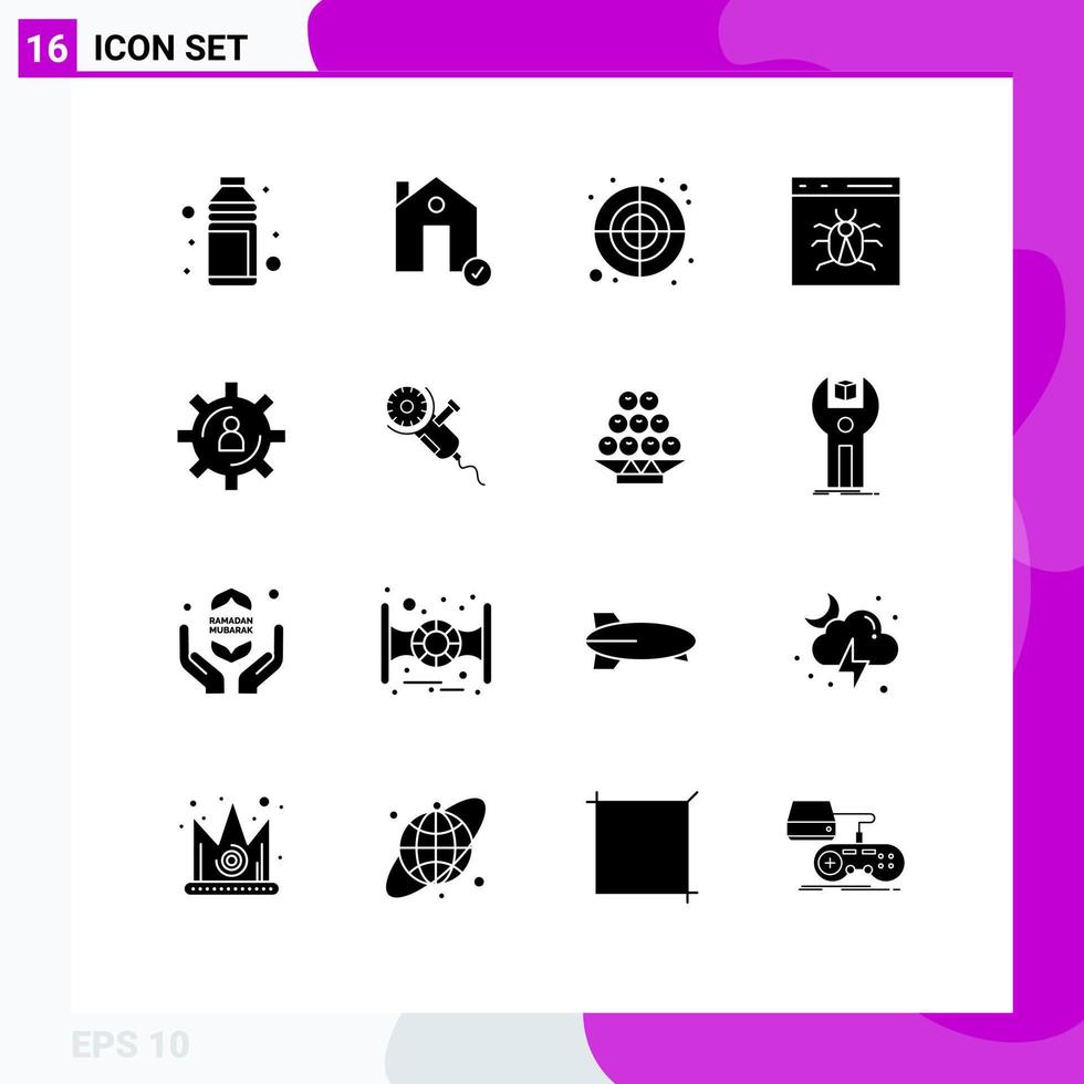 User Interface Pack of 16 Basic Solid Glyphs of bug app complete target round Editable Vector Design Elements Free Vector