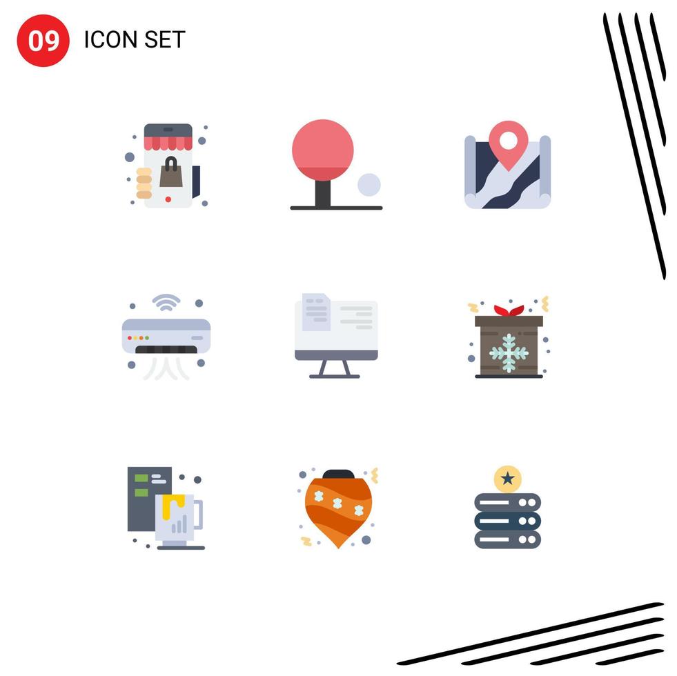 Set of 9 Modern UI Icons Symbols Signs for file wifi location iot internet Editable Vector Design Elements
