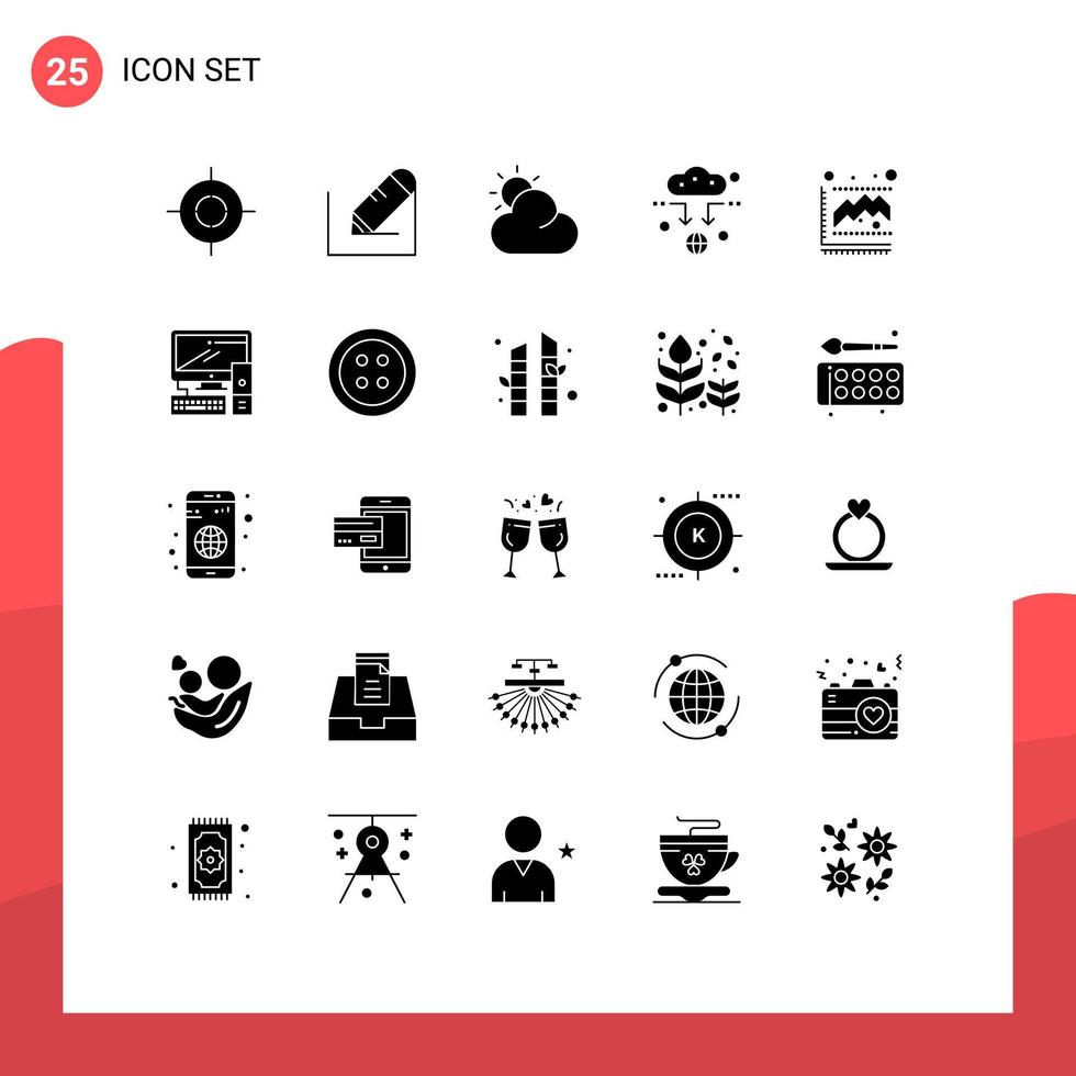 25 Thematic Vector Solid Glyphs and Editable Symbols of computer growth weather graph wifi Editable Vector Design Elements