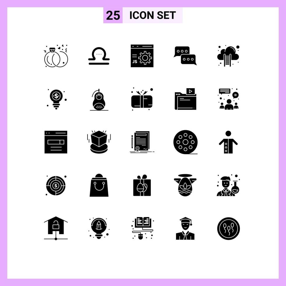 Mobile Interface Solid Glyph Set of 25 Pictograms of reply conversation browser communication programming Editable Vector Design Elements Free Vector