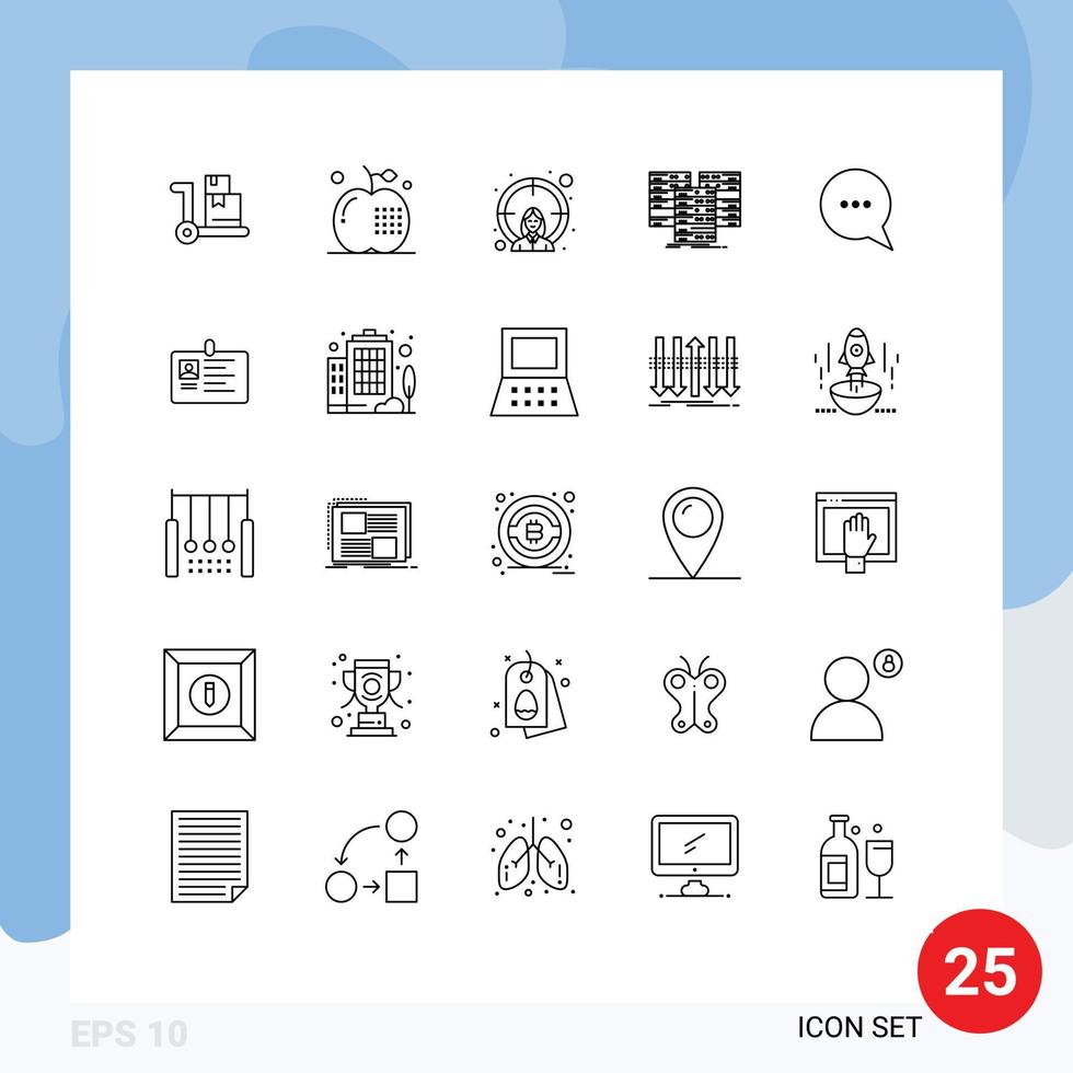 Set of 25 Modern UI Icons Symbols Signs for chat database employee data center Editable Vector Design Elements