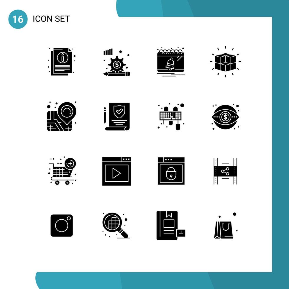 16 Universal Solid Glyphs Set for Web and Mobile Applications location solution bell puzzle box Editable Vector Design Elements Free Vector