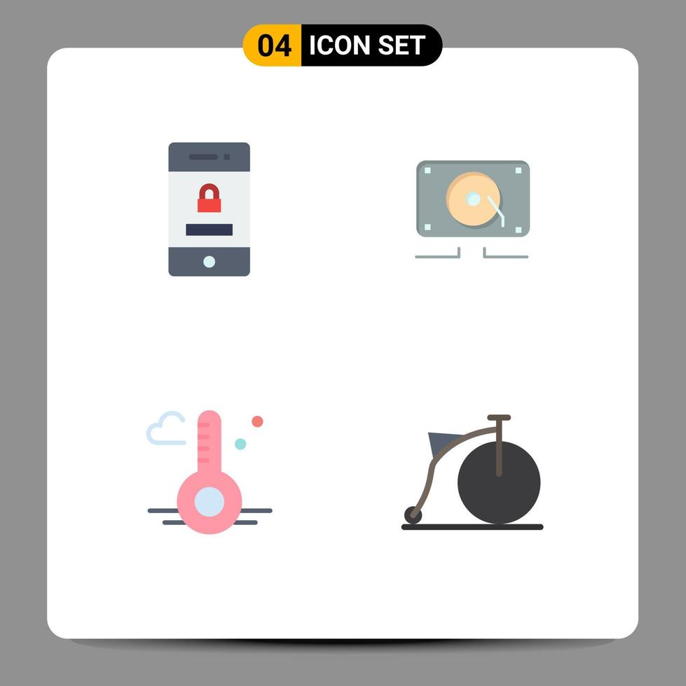 Mobile Interface Flat Icon Set of 4 Pictograms of locked thermometer technology speaker spring Editable Vector Design Elements
