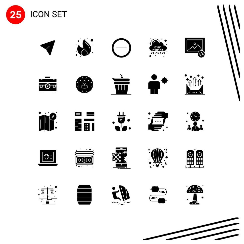 Group of 25 Solid Glyphs Signs and Symbols for image digital seo code binary Editable Vector Design Elements Free Vector