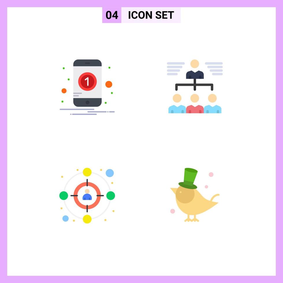4 Flat Icon concept for Websites Mobile and Apps notification audience mobile teamwork target Editable Vector Design Elements