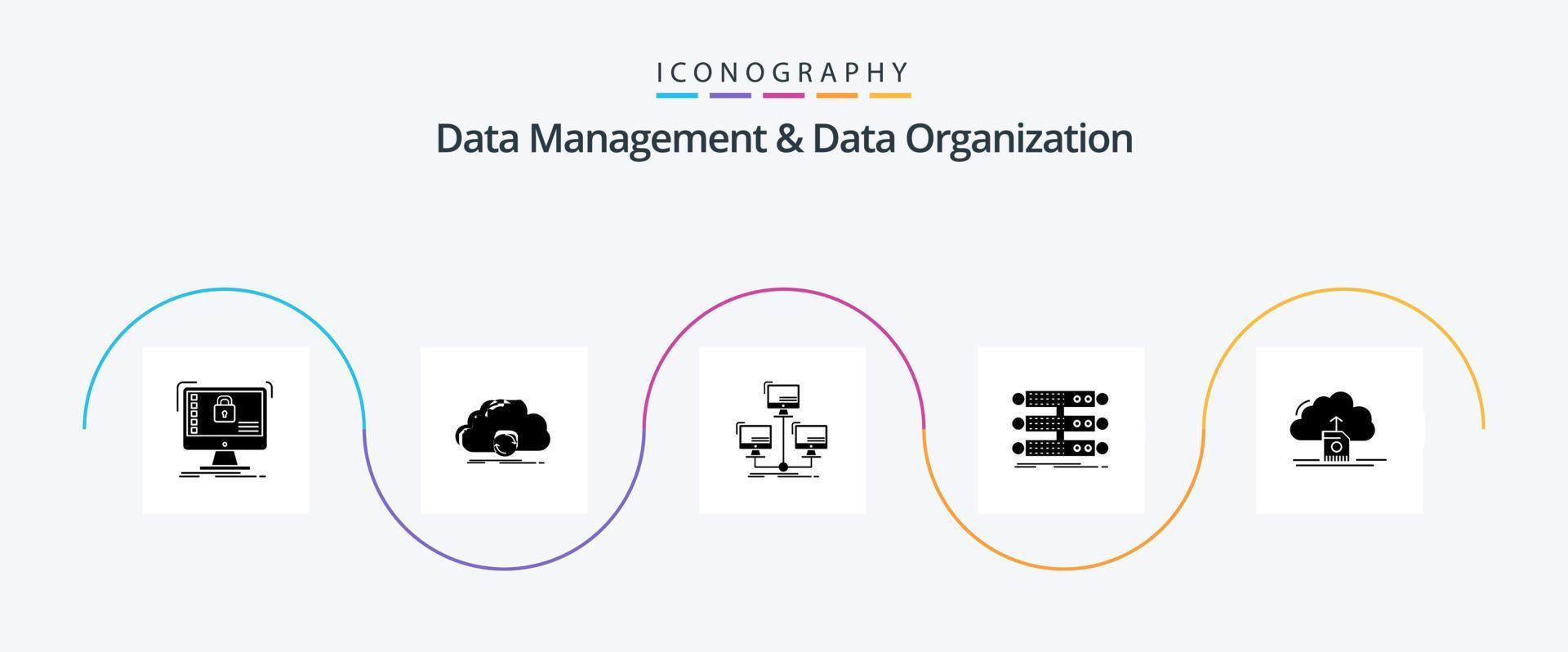 Data Management And Data Organization Glyph 5 Icon Pack Including rack. server. data. computer. connection vector